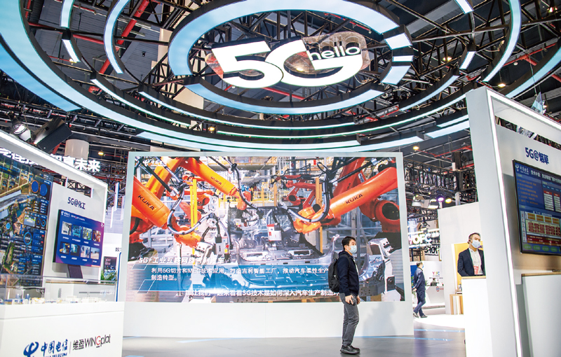 党的十八大以来,以习近平同志为核心的党中央把科技创新摆在国家发展全局的核心位置,作出战略谋划和系统部署。一大批重大创新成果竞相涌现,一些前沿领域开始进入并跑、领跑阶段,科技实力正在从量的积累迈向质的飞跃、从点的突破迈向系统能力提升,对促进经济社会发展、提高国家综合实力、满足人民日益增长的美好生活需要的支撑作用显著增强。图为2021年11月20日拍摄的中国光谷科技会展中心“5G+工业互联网成果展”现场。 新华社发 伍志尊/摄