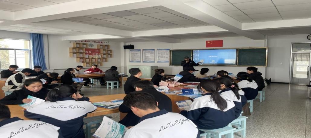 定西职业高级中学,48人参加综合测评,学生会考成绩20分左右学生居多。组织学生在教学楼前操场进行咨询交流。