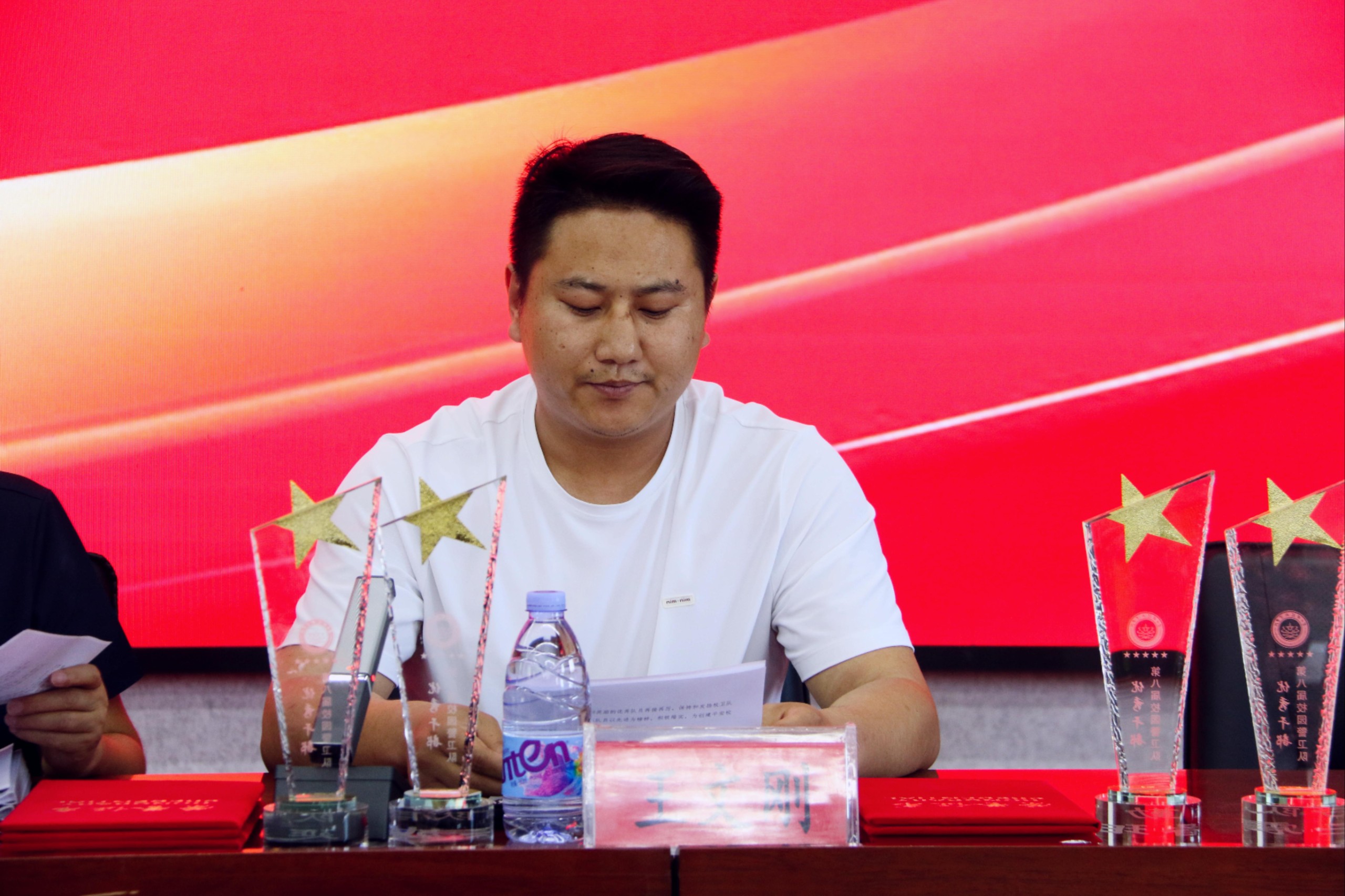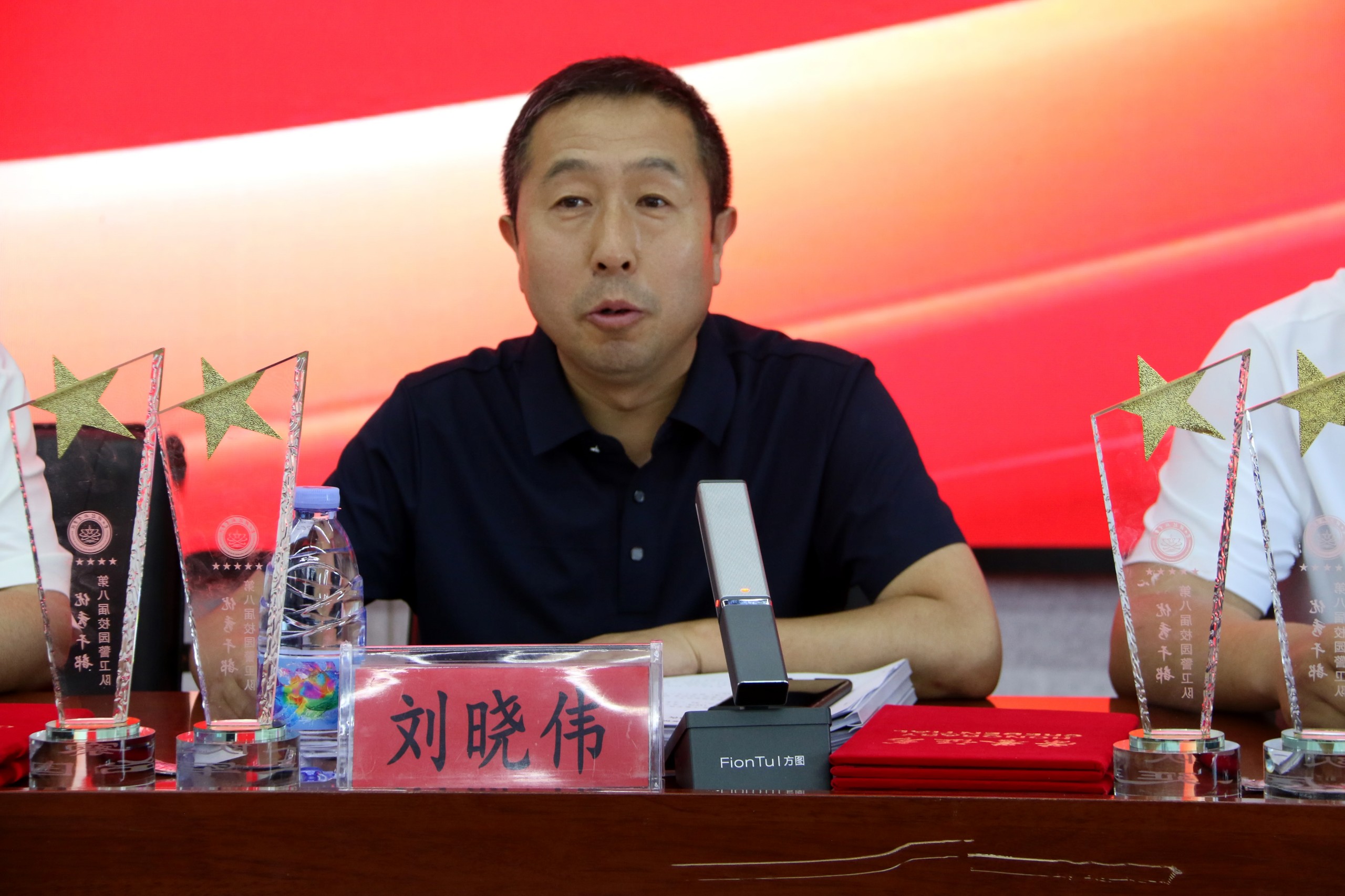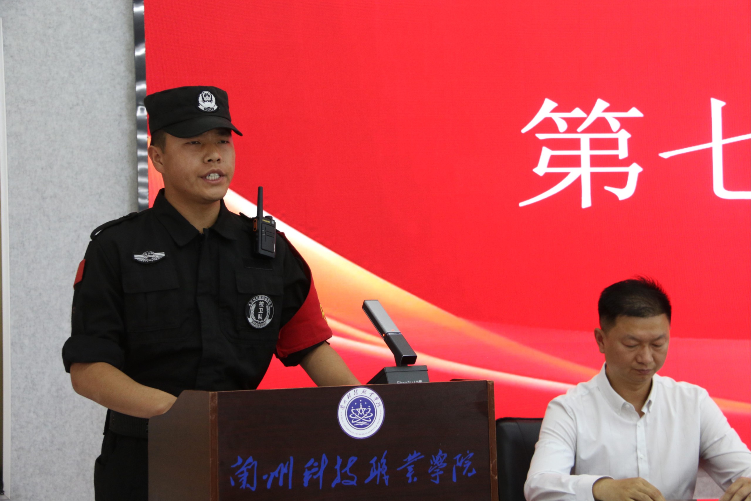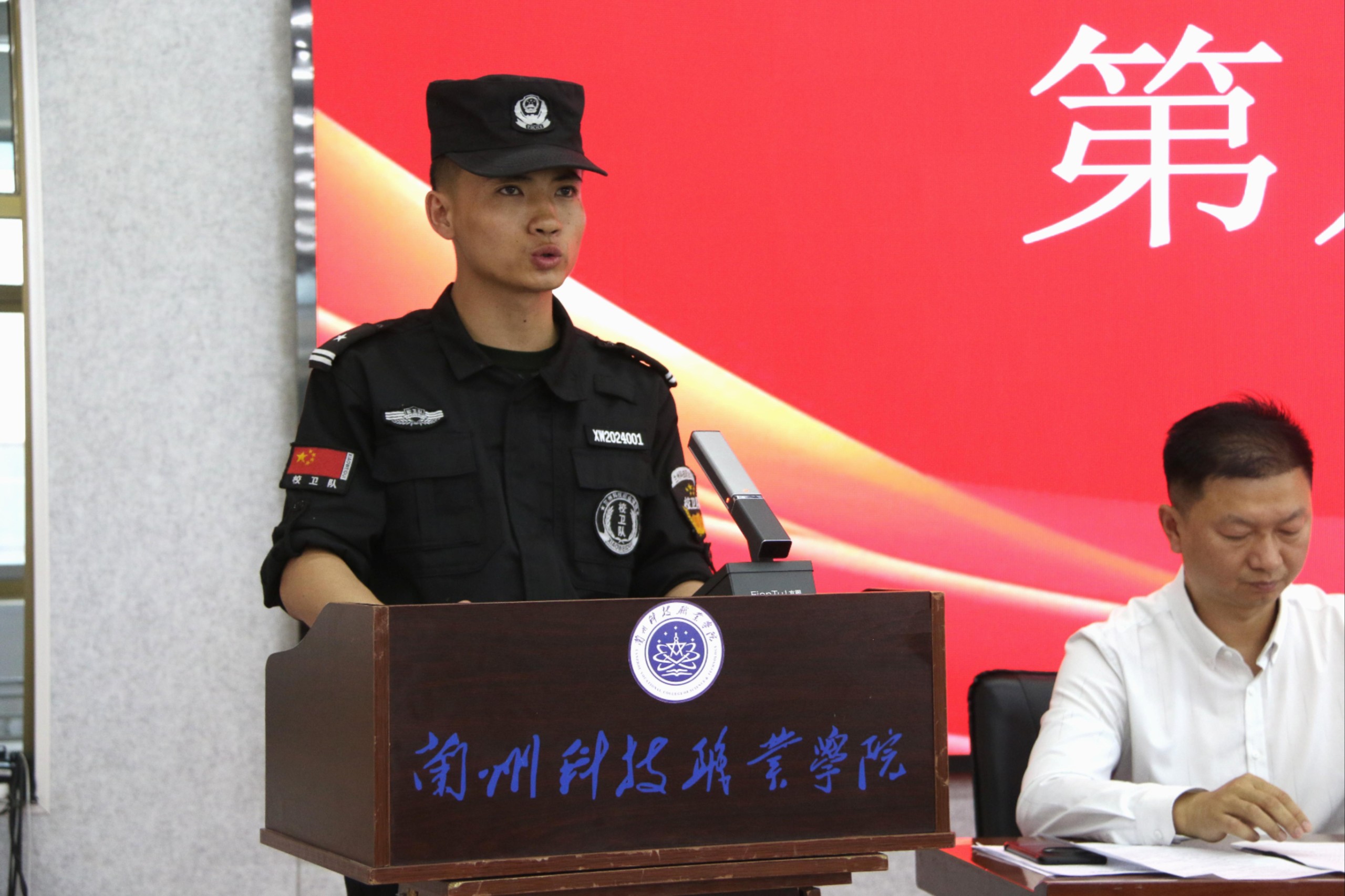 学生处处长王文刚宣布了优秀干部与优秀队员名单,院领导为获奖者颁发了荣誉证书和纪念品。校卫队队员还向领导和老师赠送了纪念品,表达感激之情。
