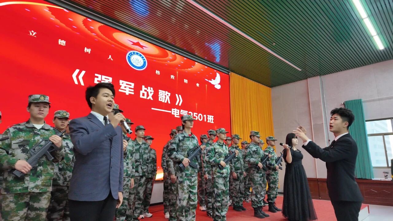 总结表彰环节结束后,由白天杨、鲍雨萌同学主持的优秀成果展示精彩上演。红色故事分享环节,口腔2402班王嘉红同学讲述的《腊子口战役——“云贵川”小战士》再现了长征路上的英雄壮举;医学美容2401班安利丽同学带来的《每一株野草都是生命的密码》诠释了平凡中的伟大坚守;财经商贸学院辅导员李万里倾情演唱《红星照我去战斗》,激昂的旋律唤起了现场师生的红色记忆。红色书籍分享中,张玉梅老师解读《甘肃红色文化十讲》,带大家探寻家乡的红色底蕴;高萌倩老师分享《毛泽东选集》,让大家在伟人思想中汲取前行力量。红色电影分享环节,计算机2503班李雪缘同学重温《长津湖》中冰雕连的英雄事迹;电商2401班洪永强同学讲述《高山下的花环》里的家国情怀,深深打动了在场每一位观众。最后,电气2501班全体同学合唱《强军战歌》,嘹亮的歌声展现了新时代青年的强军梦想与爱国情怀,全场师生共同唱响《歌唱祖国》,将活动气氛推向高潮。